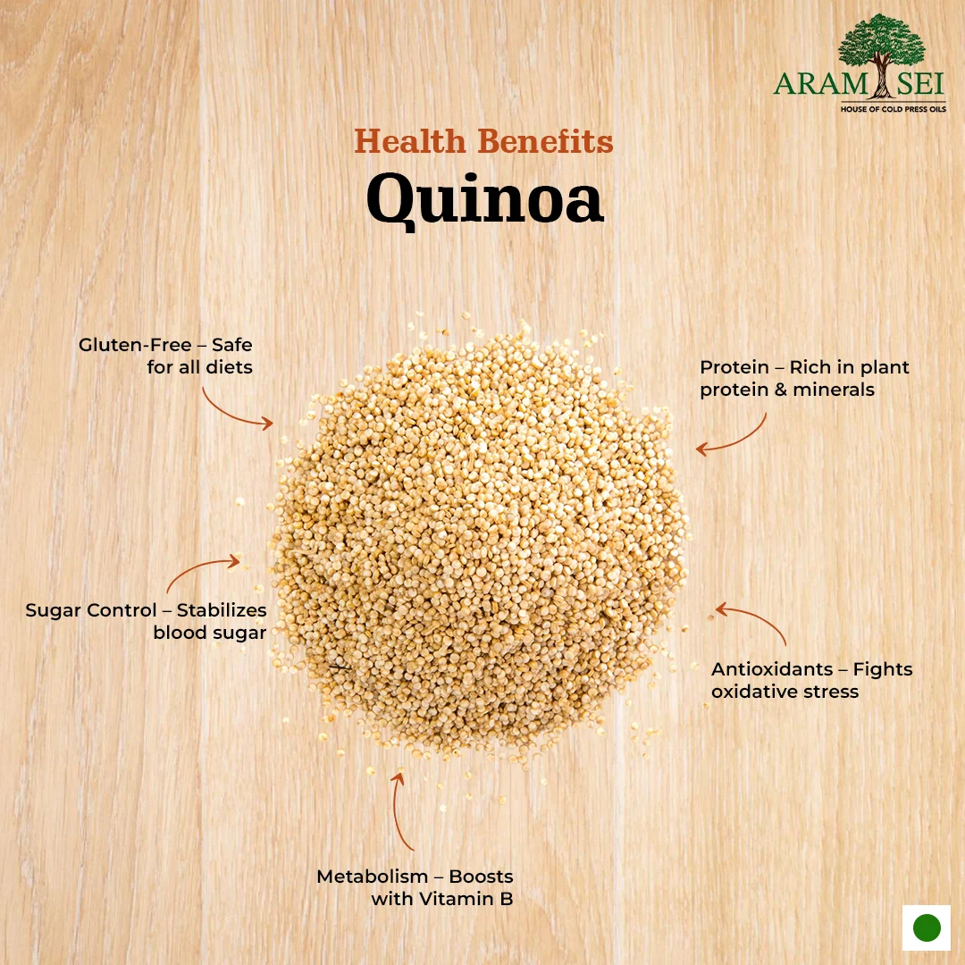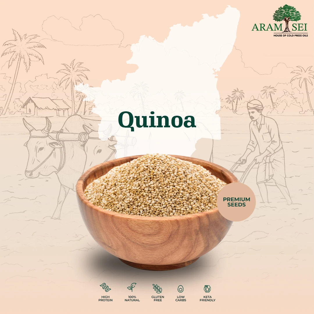 Fuel your day with clean, wholesome nutrition from the ancient grain Quinoa, a small-seeded cereal grain packed with fiber, essential amino acids, and minerals. It offers a delightful nutty flavor and a light, fluffy texture when cooked. Ideal for salads, pulao, kichidi, and more, quinoa is a versatile superfood that fits seamlessly into any meal.