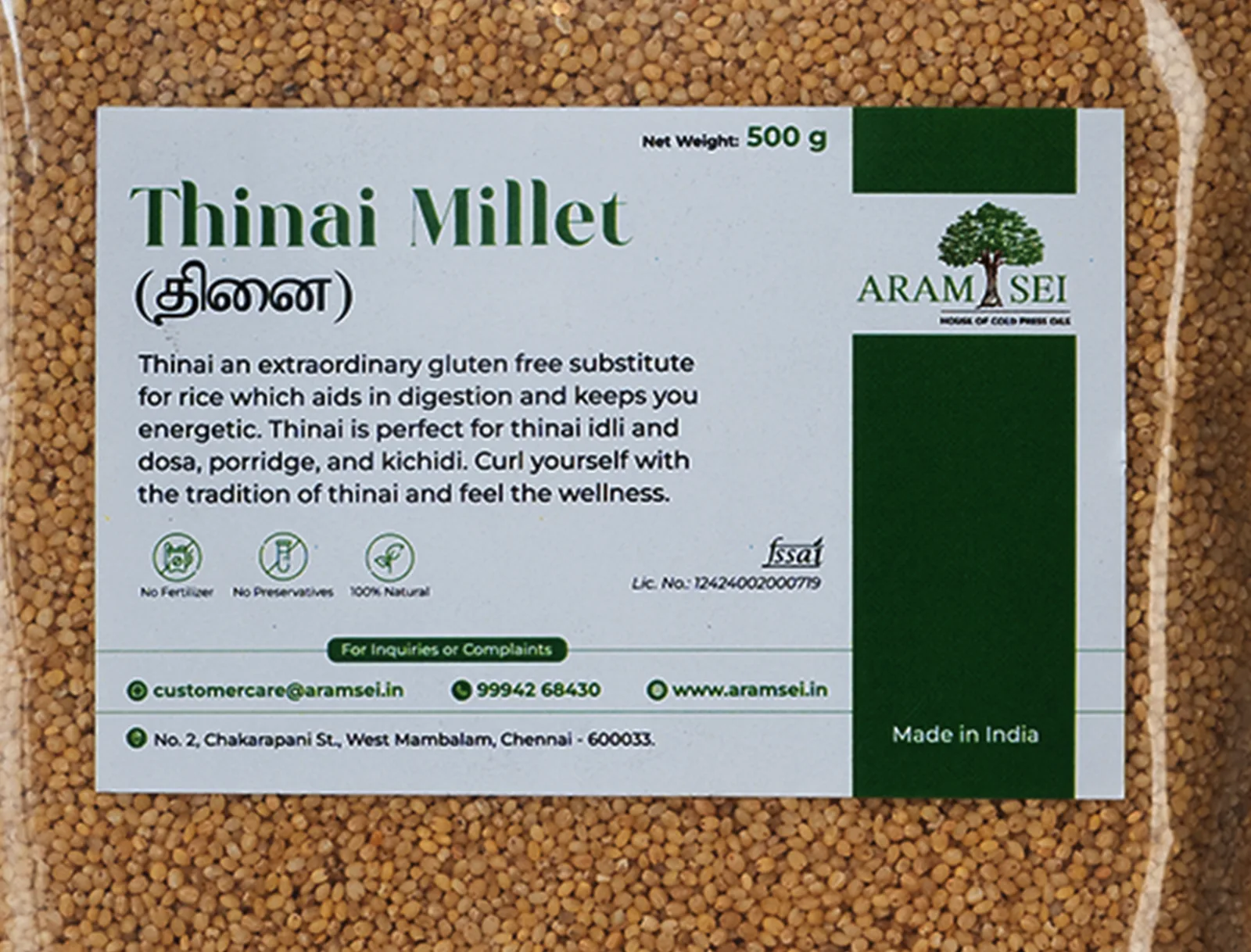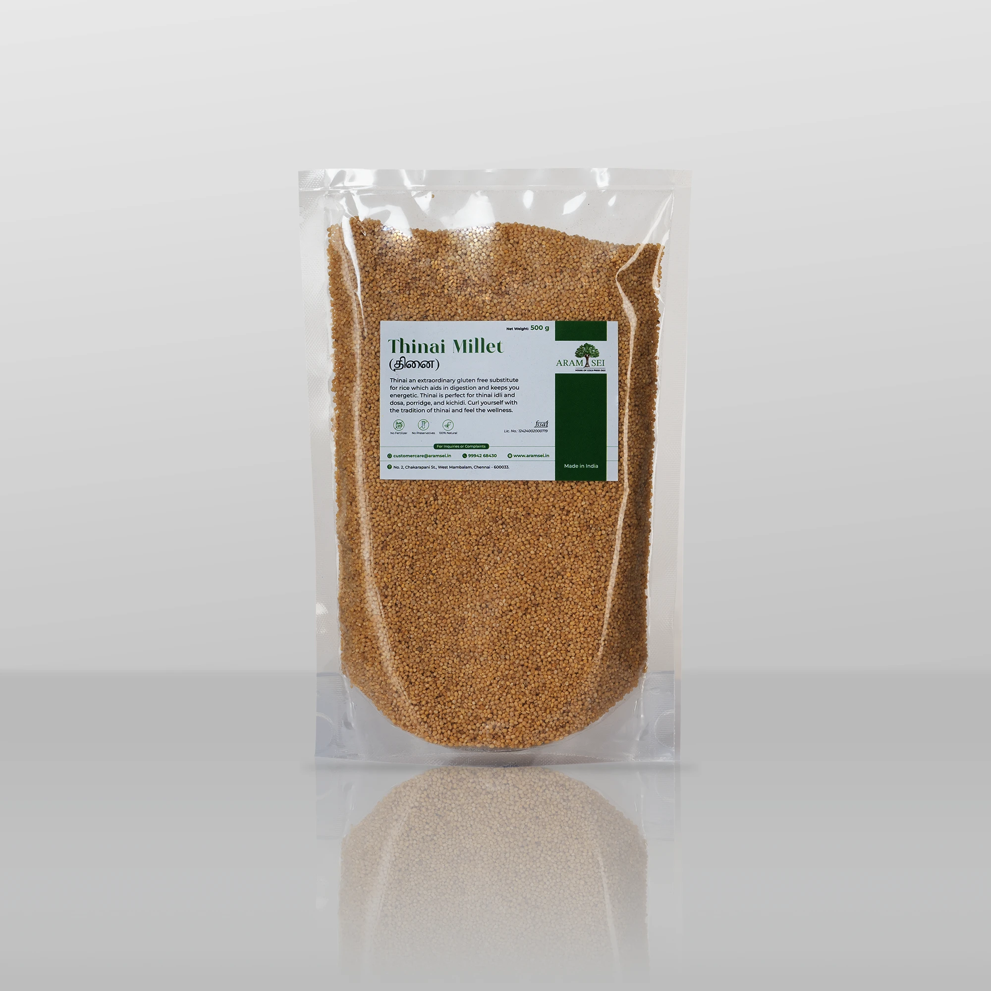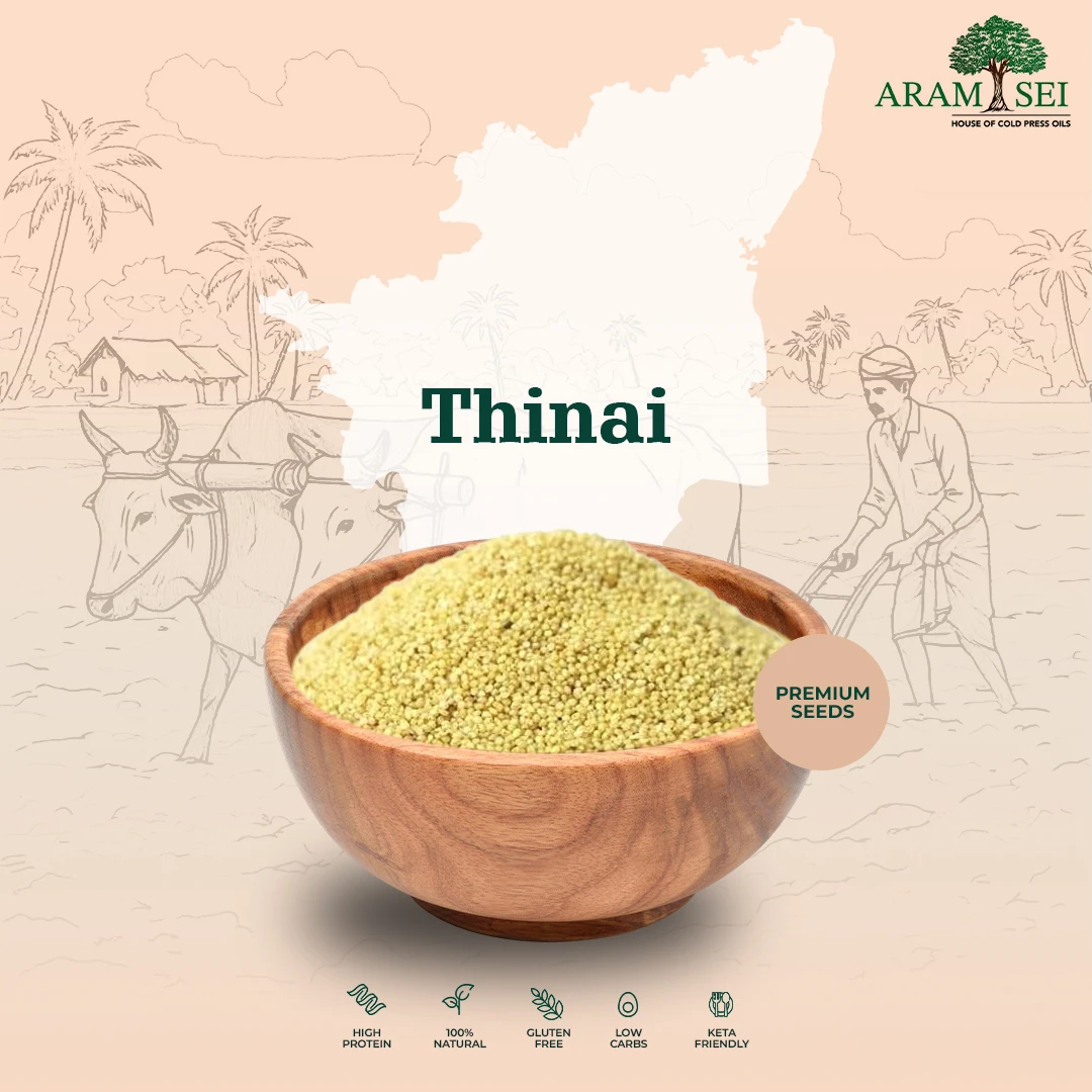 Experience the power of our 100% pure Thinai millet (Foxtail Millet), sourced from naturally grown crops and packed with fiber, protein, and essential minerals.