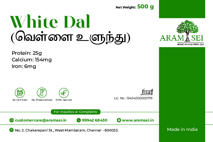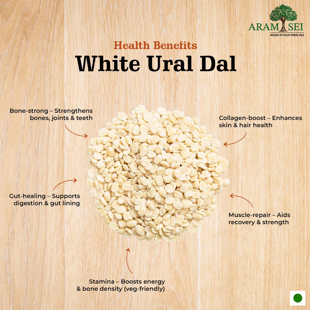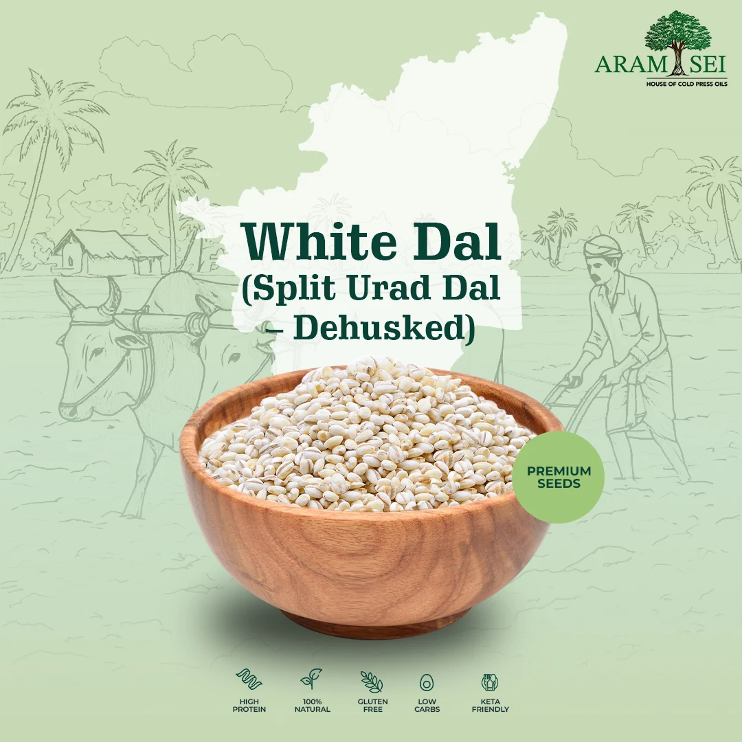 Creamy white dal made from hulled and split black urad. With a smooth, sticky texture when cooked, it’s ideal for soft idlis and crisp dosas. The color comes from removal of the tannin-rich black husk.